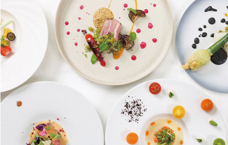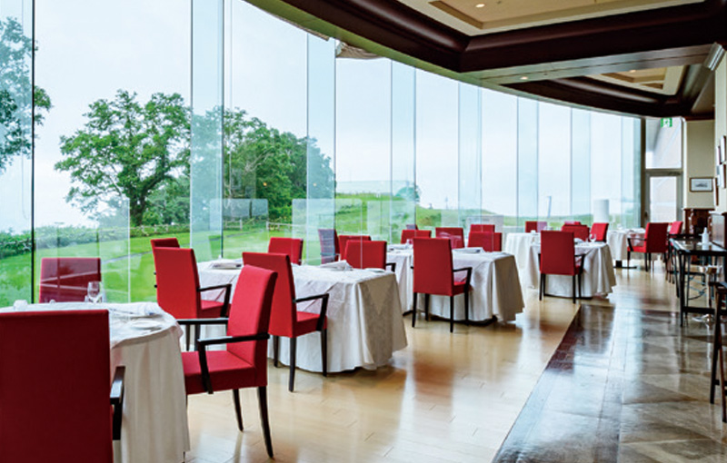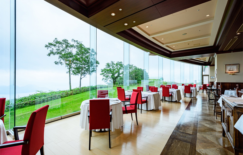 季節の素材を使ったフレンチコース料理をお楽しみいただけます。窓一面に広がる自然を眺めながら優雅な時間をお過ごしいただけます。