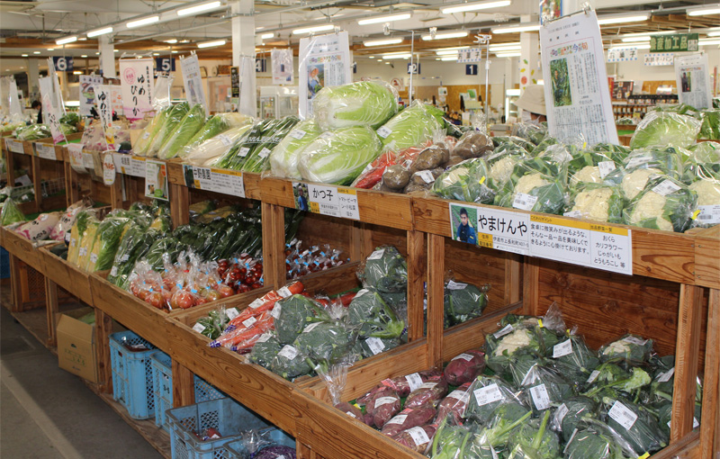 季節感あふれる新鮮野菜を中心に水産物や畜産物から作った加工食品や菓子類など数多くの地元産品を取りそろえています。