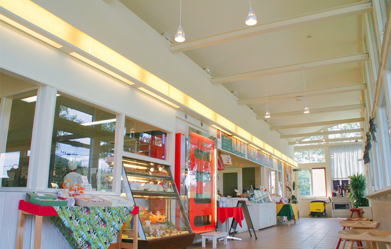 羊蹄山を望む自然豊かなロケーション。お菓子などに使用 される牛乳は牧場から届く新鮮な牛乳を使用。