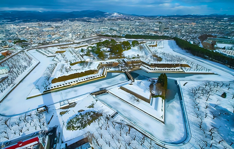 展望台からは特別史跡五稜郭の美しい星形と函館市街や函館山を見ることができます。2006年4月1日にオープンした高さ107mの五稜郭タワーは函館のランドマークです。