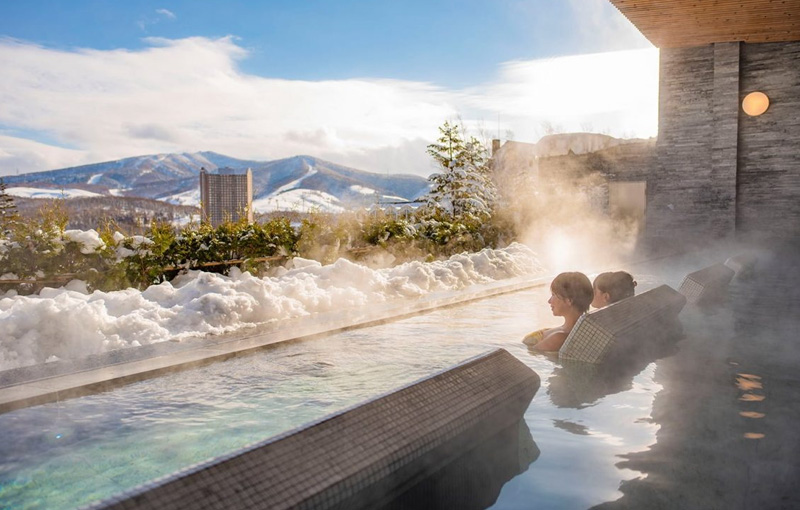 客室は33㎡の広々とした空間で、上質な眠りを追求したシモンズ社製のベッドを採用しております。やわらかな肌触りの天然温泉、開放的な露天風呂で自然豊かな景色を眺めながら、身も心もゆったりお寛ぎいただけます。羊蹄山麓の清らかな伏流水を利用した大浴場も利用可能です。