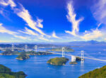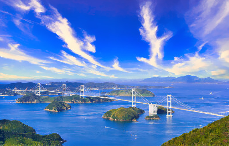 広島県尾道市と愛媛県今治市を結ぶ全長約60kmの道では瀬戸内海に浮かぶ島々の風景を存分に楽しむことができます。「サイクリングロード」は日本で初めて海峡を横断できる自転車道として有名です。