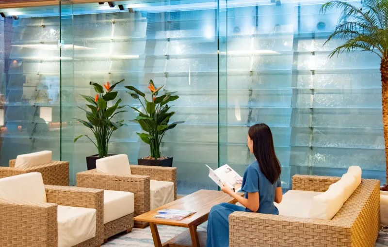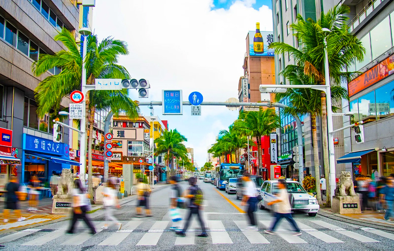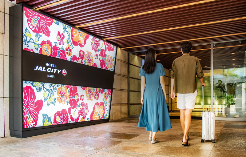 正面玄関を出れば目の前は観光客で賑わう国際通り。観光にもビジネスにも最適なロケーションです。館内は、紅型・海・琉球ガラス・サンゴの砂浜など、沖縄の自然や文化をイメージし、リゾート感を演出。南国ならではの癒しと安らぎに満ちた空間で、快適な沖縄ライフをお過ごしいただけます。